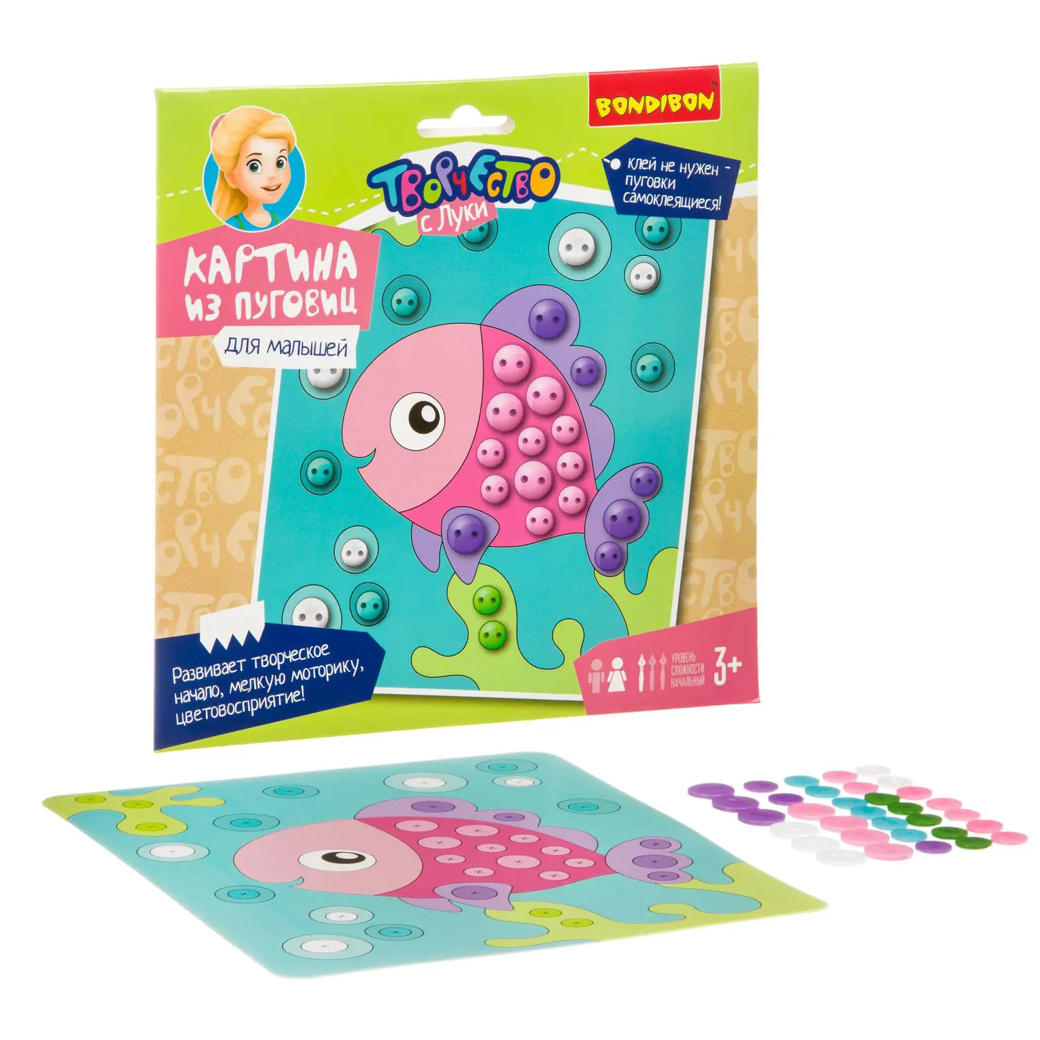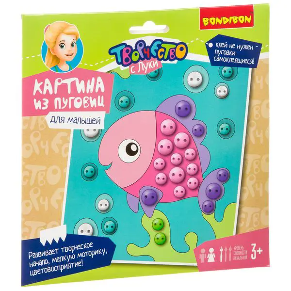 Набор для творчества. Bondibon. Картина из пуговиц для малышей. "Рыбка"