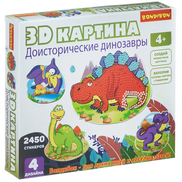 Набор для творчества. Bondibon. 3D картина. "Доисторические динозавры". (4 дизайна)