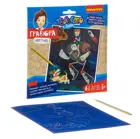Сцарапывая верхний слой гравюры специальным штихелем, входящим в набор, ребёнок почувствует себя художником, творящим настоящее произведение искусства.