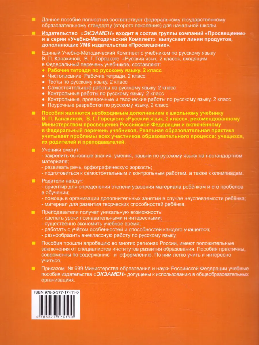 Данное пособие полностью соответствует федеральному государственному образовательному стандарту (второго поколения) для начальной школы. Рабочая тетрадь построена в соответствии с авторской программой по русскому языку В.П. Канакиной, В.Г. Горецкого. Содержание тетради направлено на реализацию основных целей программы, в ней предусмотрены разнообразные виды работ (индивидуальных, парных, групповых), все задания соответствуют возрастным особенностям детей.