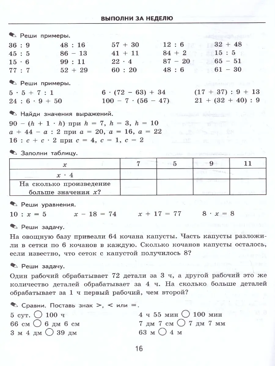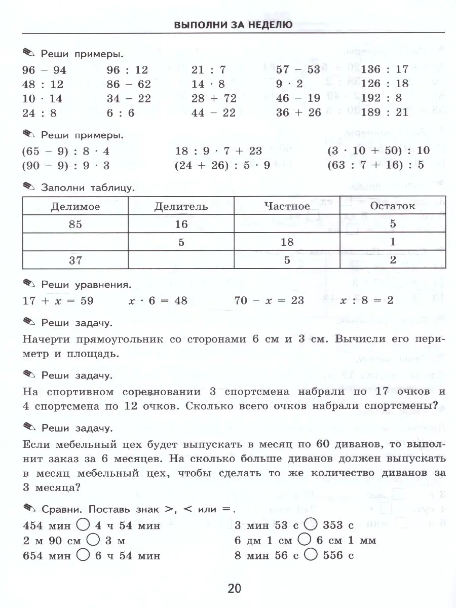 В пособии представлены разнообразные задания по математике за курс 3 класса. Каждая работа рассчитана на недельную нагрузку. Работа с данным пособием позволит повысить интерес к изучению математики, будет способствовать развитию логического мышления, пространственных представлений и воображения.