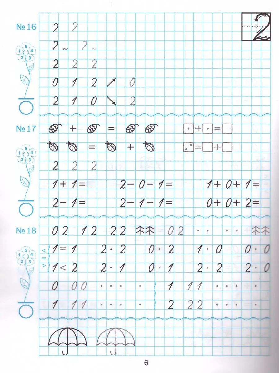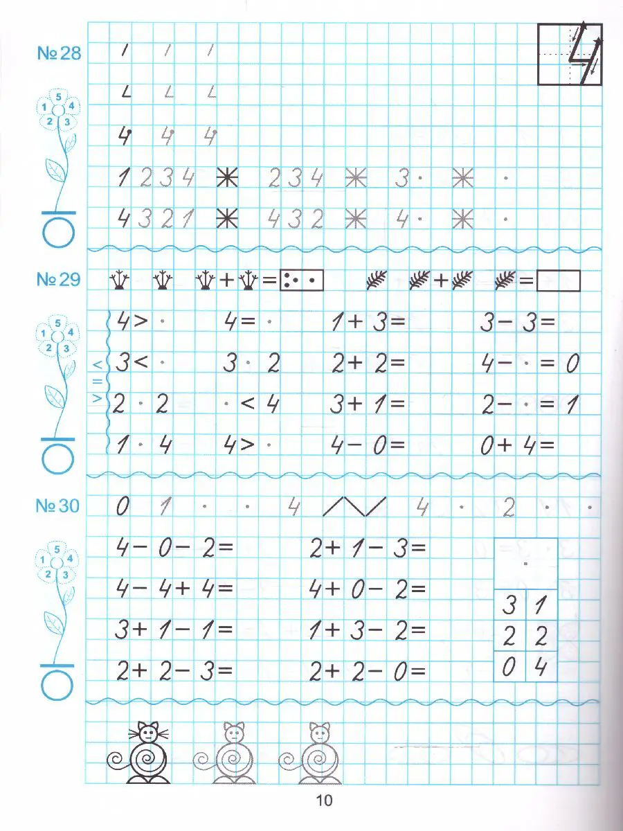 Пособие предназначено для отработки и закрепления правильного написания цифр и математических знаков. Данный материал представлен в классических образцах заданий на сравнение чисел, в примерах и простых задачах на сложение и вычитание, на действиях с именованными числами.