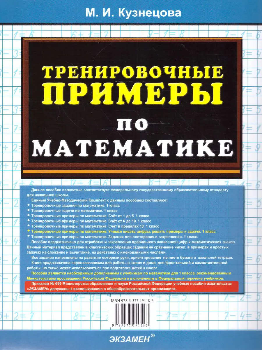 Математика. 1 класс. Учимся писать цифры. Тренировочные примеры. ФГОС новый