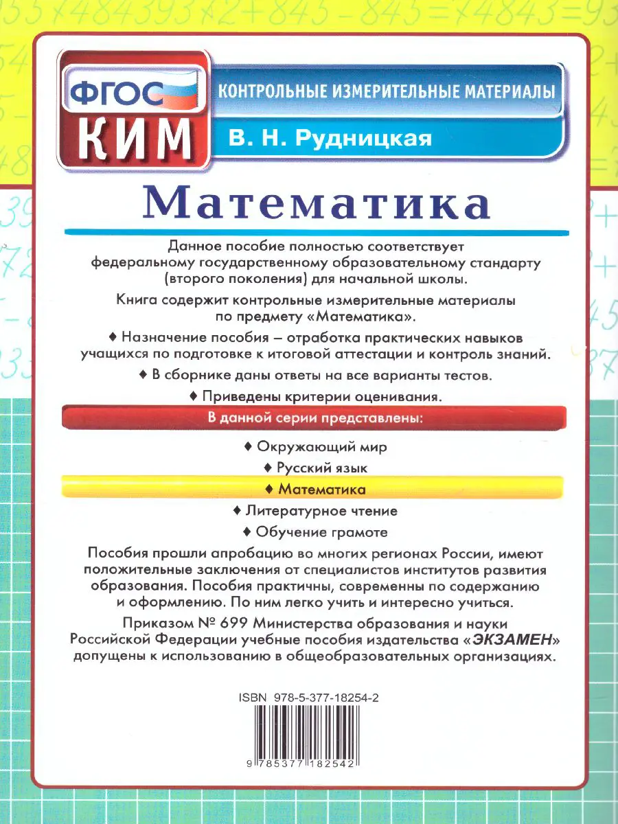 Данное пособие полностью соответствует федеральному государственному образовательному стандарту (второго поколения) для начальной школы. Книга содержит контрольные измерительные материалы по предмету "Математика". Назначение пособия - отработка практических навыков учащихся по подготовке к итоговой аттестации и контроль знаний. В сборнике даны ответы на все варианты тестов. Приведены критерии оценивания.