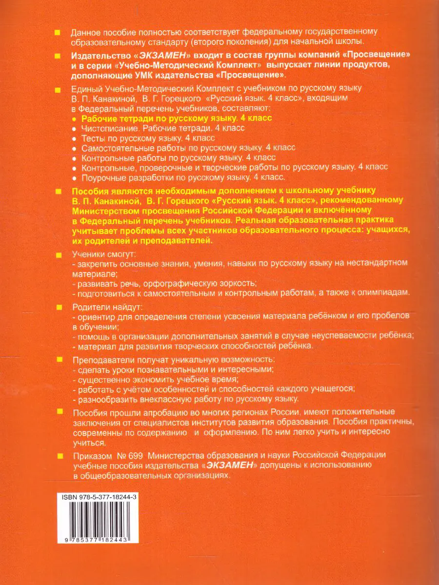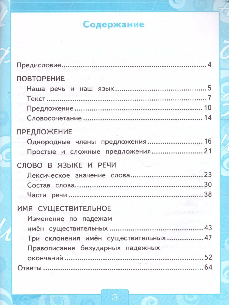 Данное пособие полностью соответствует федеральному государственному образовательному стандарту (второго поколения) для начальной школы. Рабочая тетрадь построена в соответствии с авторской программой по русскому языку Л.М. Зелениной и Т.Е. Хохловой. Содержание тетради направлено на реализацию основных целей программы: лингвистическое развитие учащихся, обогащение их словарного запаса, систематизацию знаний и практических умений.