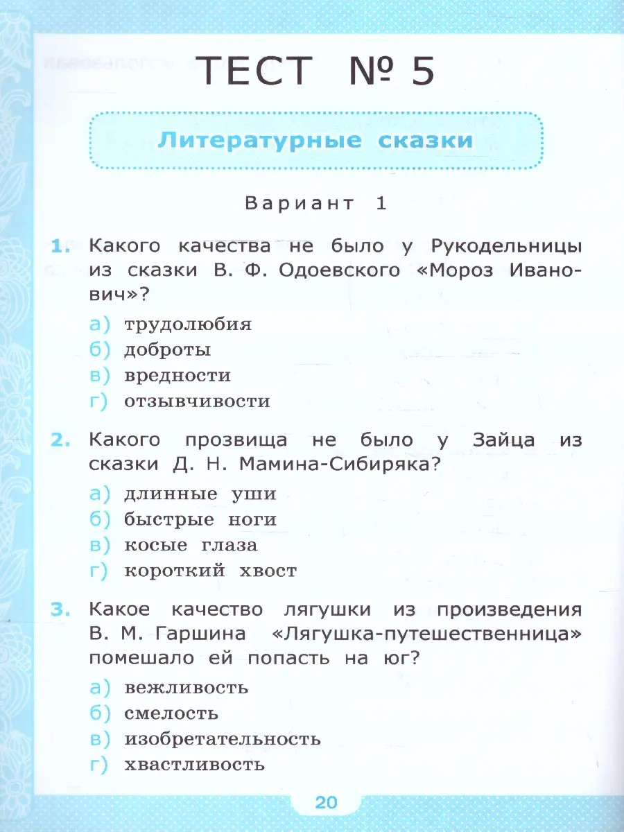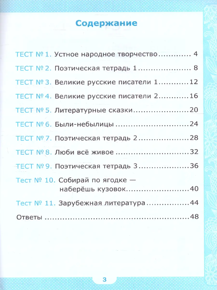 Тесты могут выборочно использоваться для организации контрольных проверок при оценивании достижений учеников по литературному чтению.