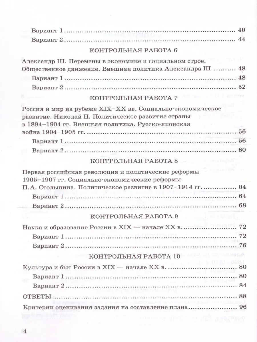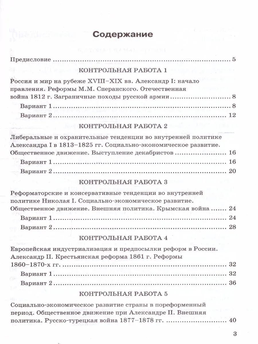Пособие включает контрольные работы по истории России, которые соответствуют содержанию и структуре учебника "История России. 9 класс" под редакцией А. В. Торкунова (издательство "Просвещение").