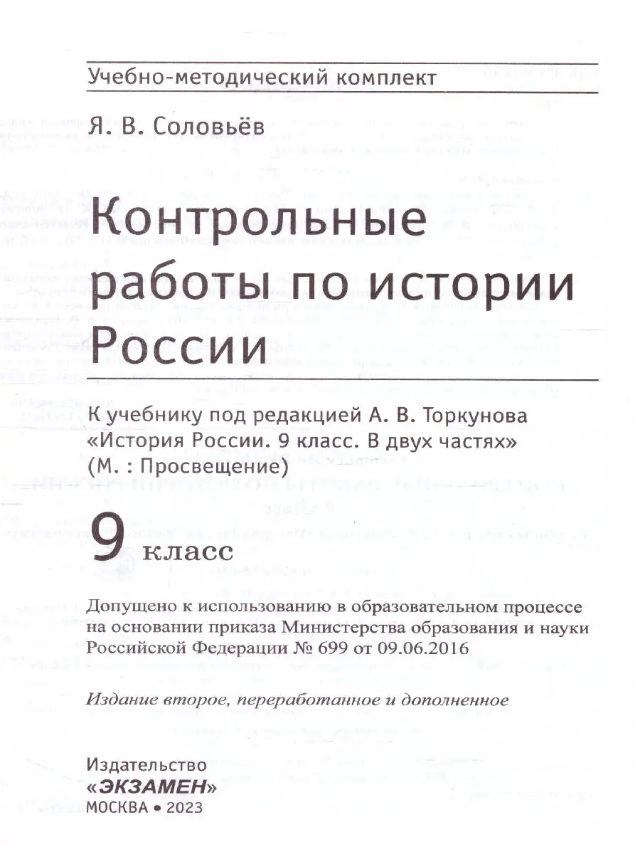 Ко всем заданиям даны ответы. Я. В. Соловьёв - кандидат исторических наук, доцент Московского государственного областного университета, автор пособий по истории России.