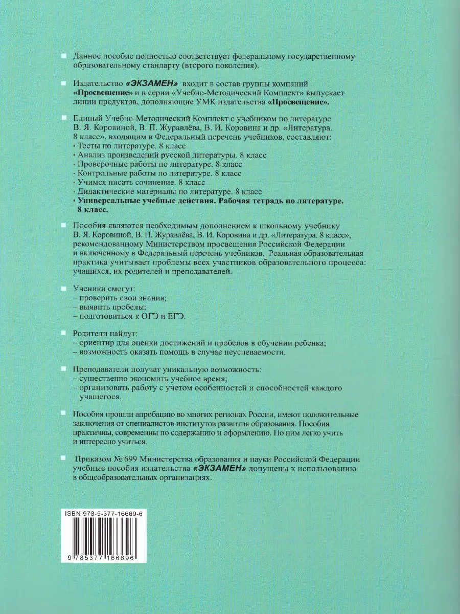 Литература. 8 класс. Рабочая тетрадь. Универсальные учебные действия. УМК Коровиной