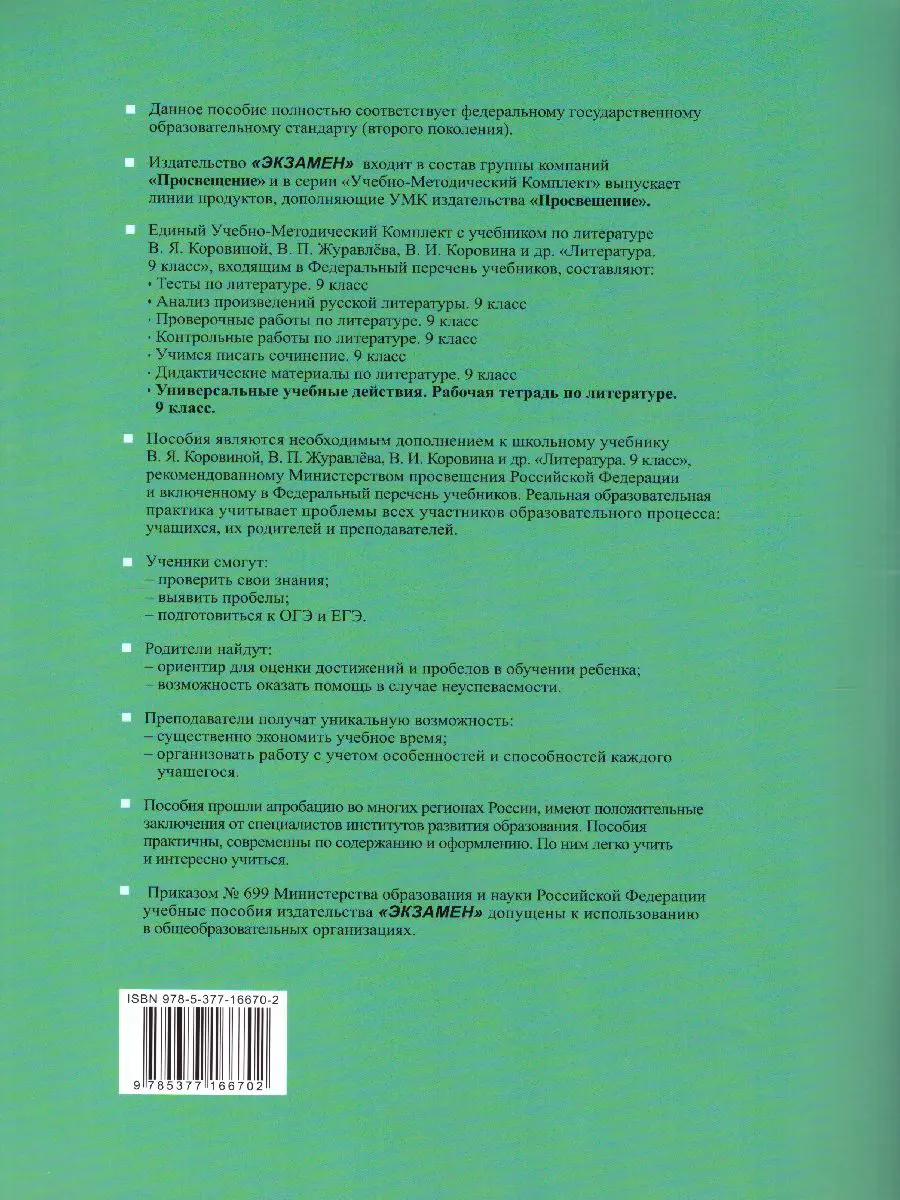 Литература. 9 класс. Рабочая тетрадь. Универсальные учебные действия. УМК Коровиной