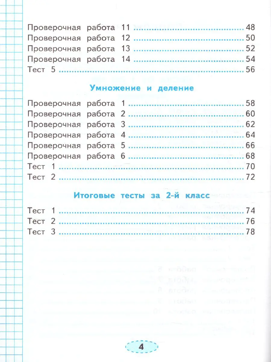 Данное пособие содержит тексты проверочных работ и тестов по математике для 2-го класса начальной школы, составленные в полном соответствии с программой и учебно-методическим комплектом пособий по математике для 2-го класса авторского коллектива под руководством М. И. Моро.