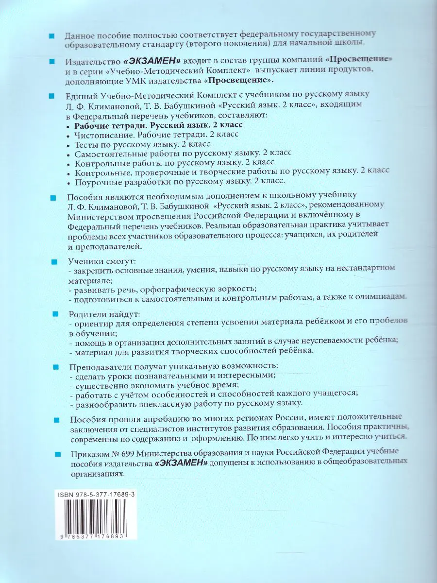Рабочая тетрадь построена в соответствии с авторской программой по русскому языку Л. Ф. Климановой, Т. В. Бабушкиной.