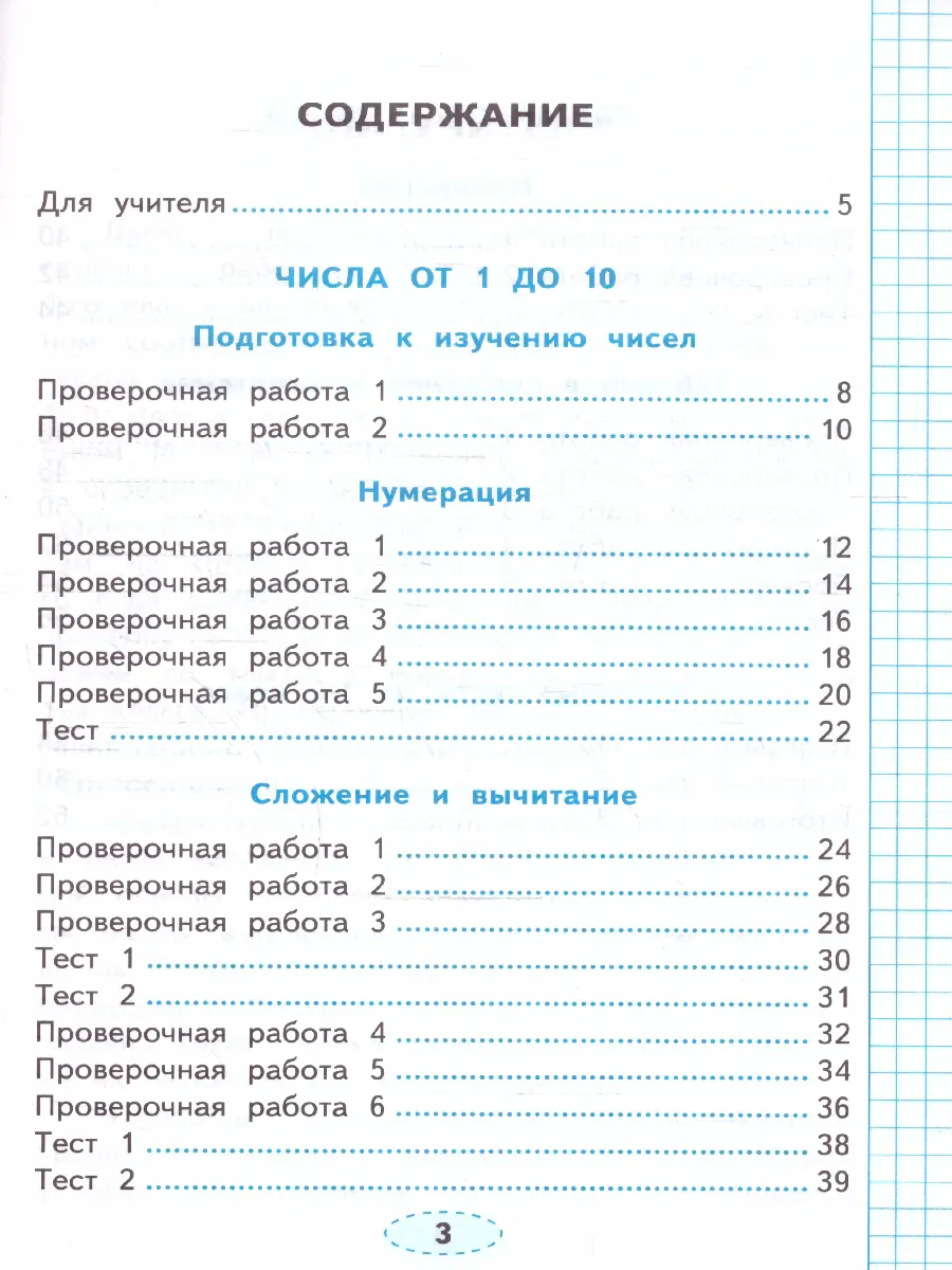 Данное пособие содержит тексты проверочных работ и тестов по математике для 1-го классасса начальной школы, составленные в полном соответствии с программой и учебно-методическим комплектом пособий по математике для 1-го классасса авторского коллектива под руководством М. И. Моро.