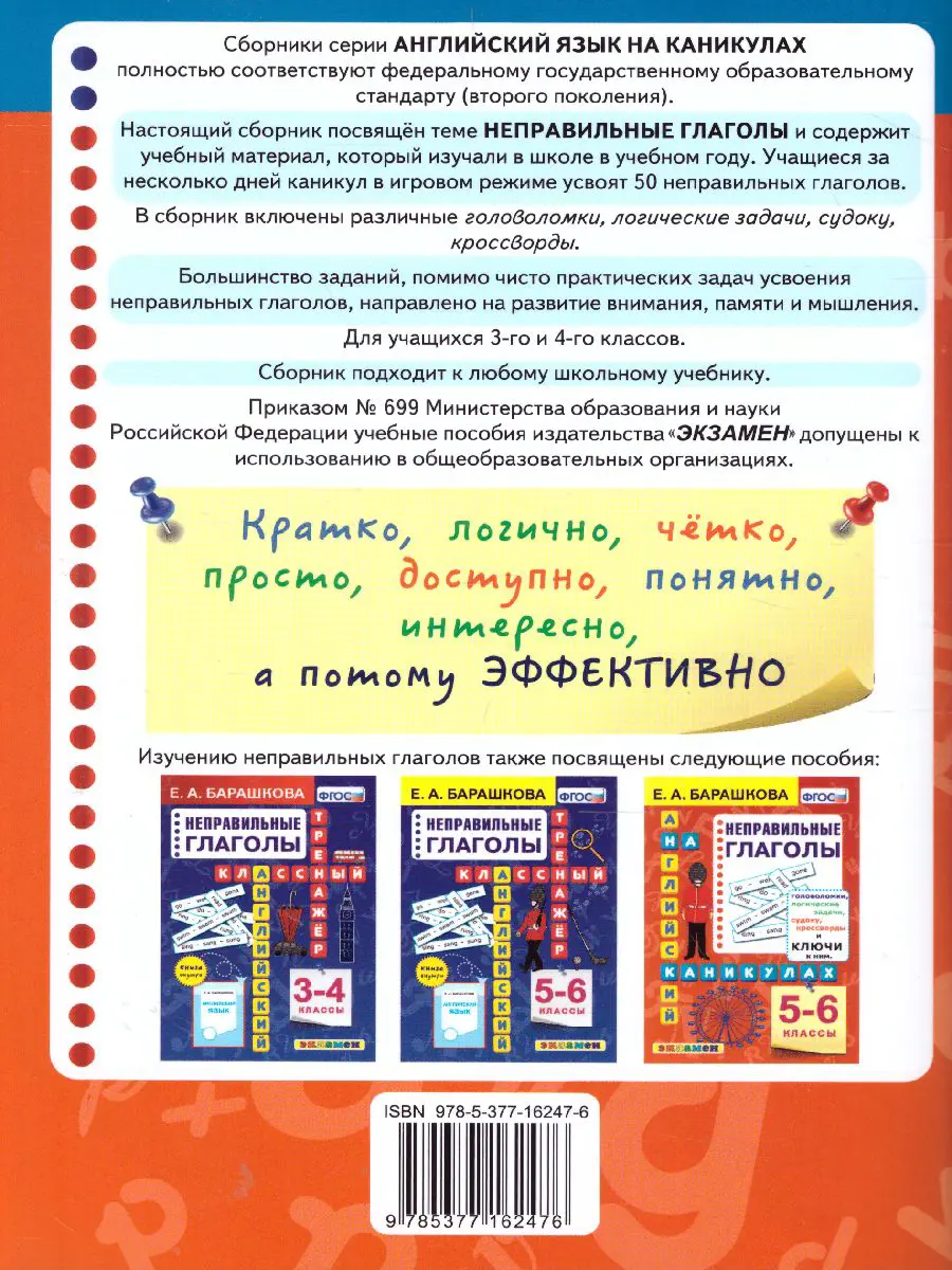 Серия "Английский язык на каникулах" - это продуманная система заданий для повторения и закрепления материала, усвоенного в школе. Задания не только активизируют учебный материал, но и развивают восприятие, внимание, память, мышление.