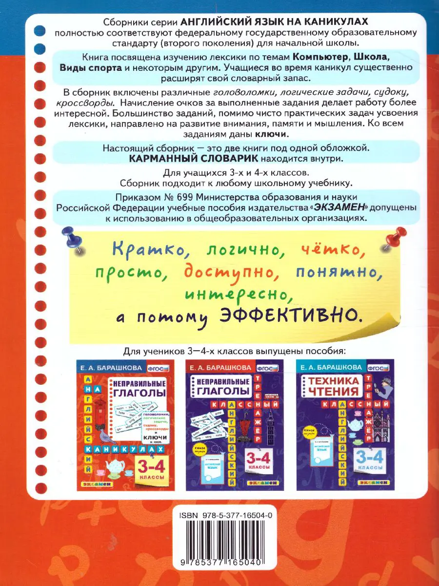 Учащиеся во время каникул существенно расширят свой словарный запас. Разнообразные головоломки, загадки, кроссворды, логические задачи увлекут ребёнка, и он с удовольствием будет заниматься во время летних, осенних, зимних и весенних каникул. Система заданий развивает восприятие, внимание, память, мышление.