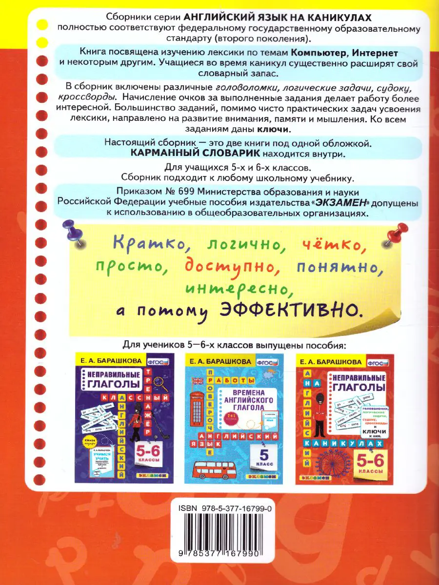 Данное пособие полностью соответствует федеральному государственному образовательному стандарту (второго поколения). Серия "Английский язык на каникулах" - это продуманная система заданий для повторения и закрепления материала, усвоенного в школе.