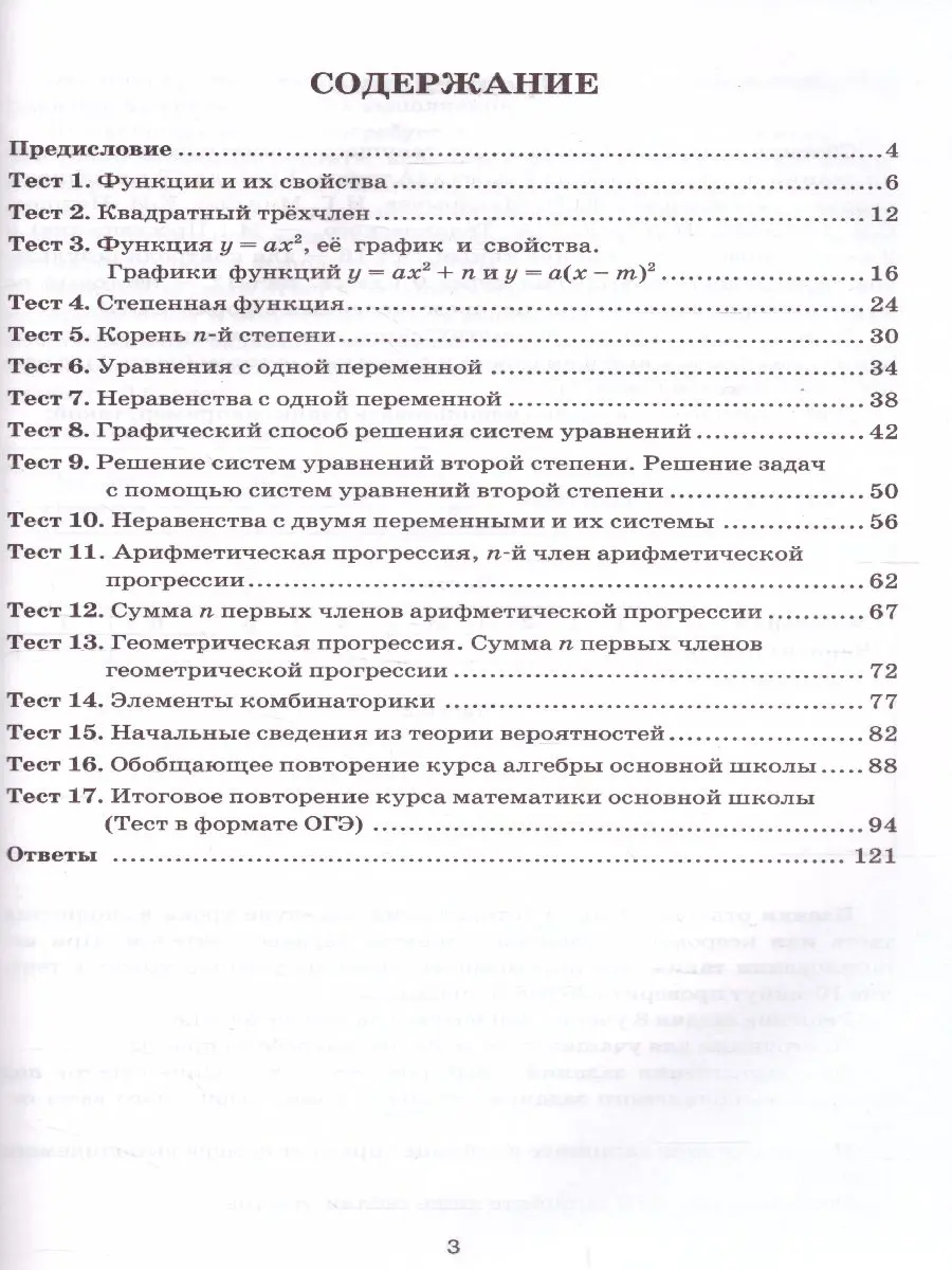 Книга адресована школьникам для самостоятельного контроля знаний и учителям математики 9 классов.