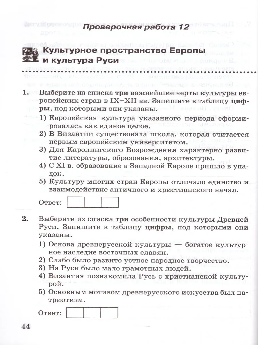Пособие включает проверочные работы по истории России, которые соответствуют содержанию и структуре учебника "История России. 6 класс. В двух частях" под редакцией А. В. Торкунова (издательство "Просвещение").