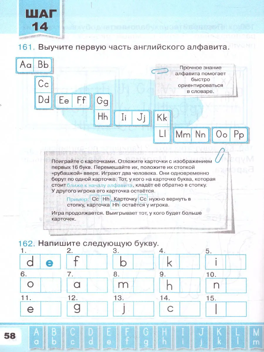 Большинство заданий, помимо чисто практической задачи усвоения букв английского алфавита, направлено на развитие внимания и памяти.