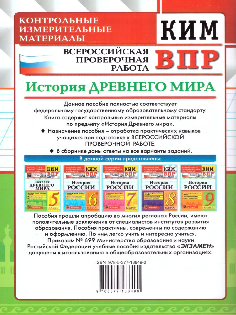 Всероссийские проверочные работы (ВПР). История древнего мира. 5 класс. КИМ. ФГОС новый