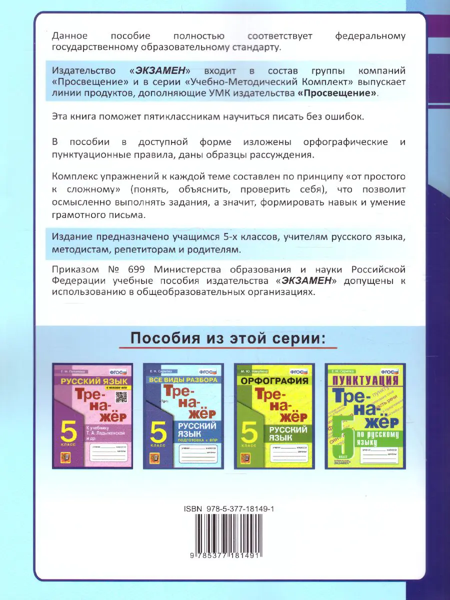 Издание предназначено учащимся 5-х классов, учителям русского языка, методистам, репетиторам и родителям.