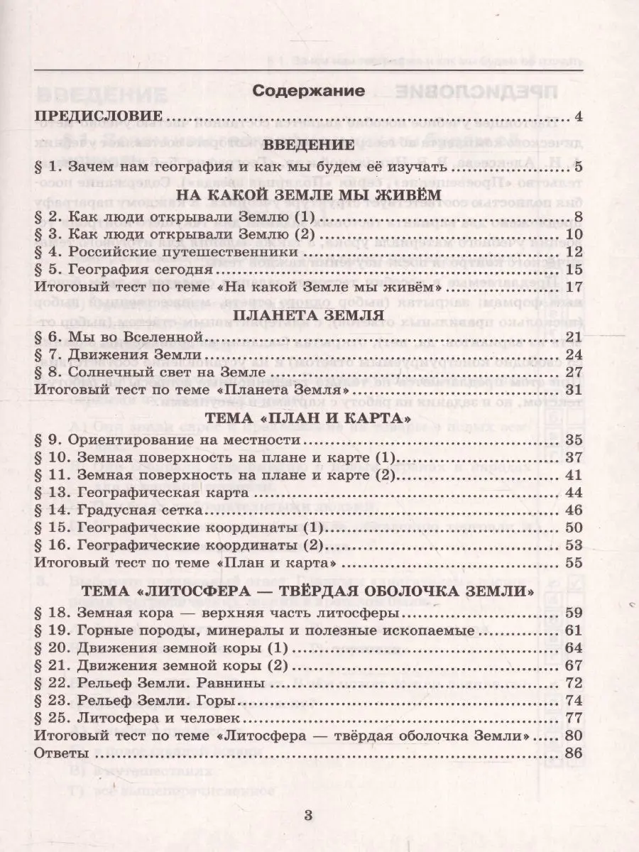 Особый раздел составляют итоговые тесты после каждой темы. Тесты реализуют практико-ориентированную составляющую курса географии, помогают определить успехи в обучении.
