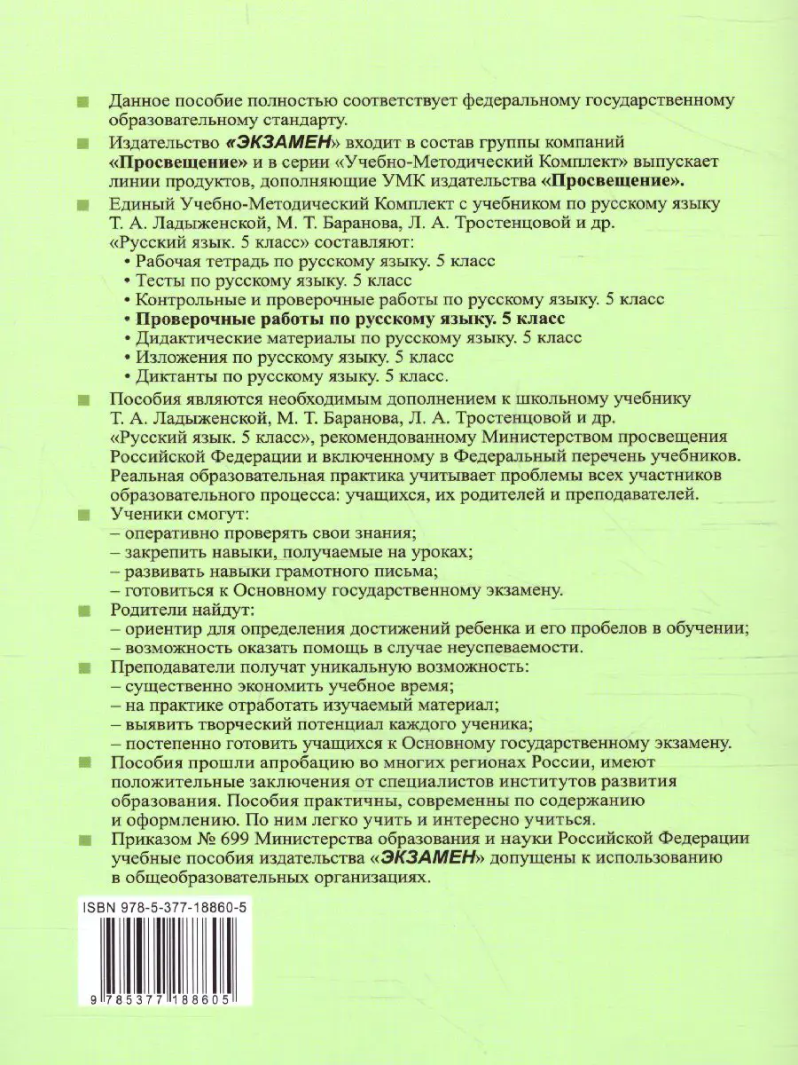 Русский язык. 5 класс. Проверочные работы. УМК Ладыженской. ФГОС новый
