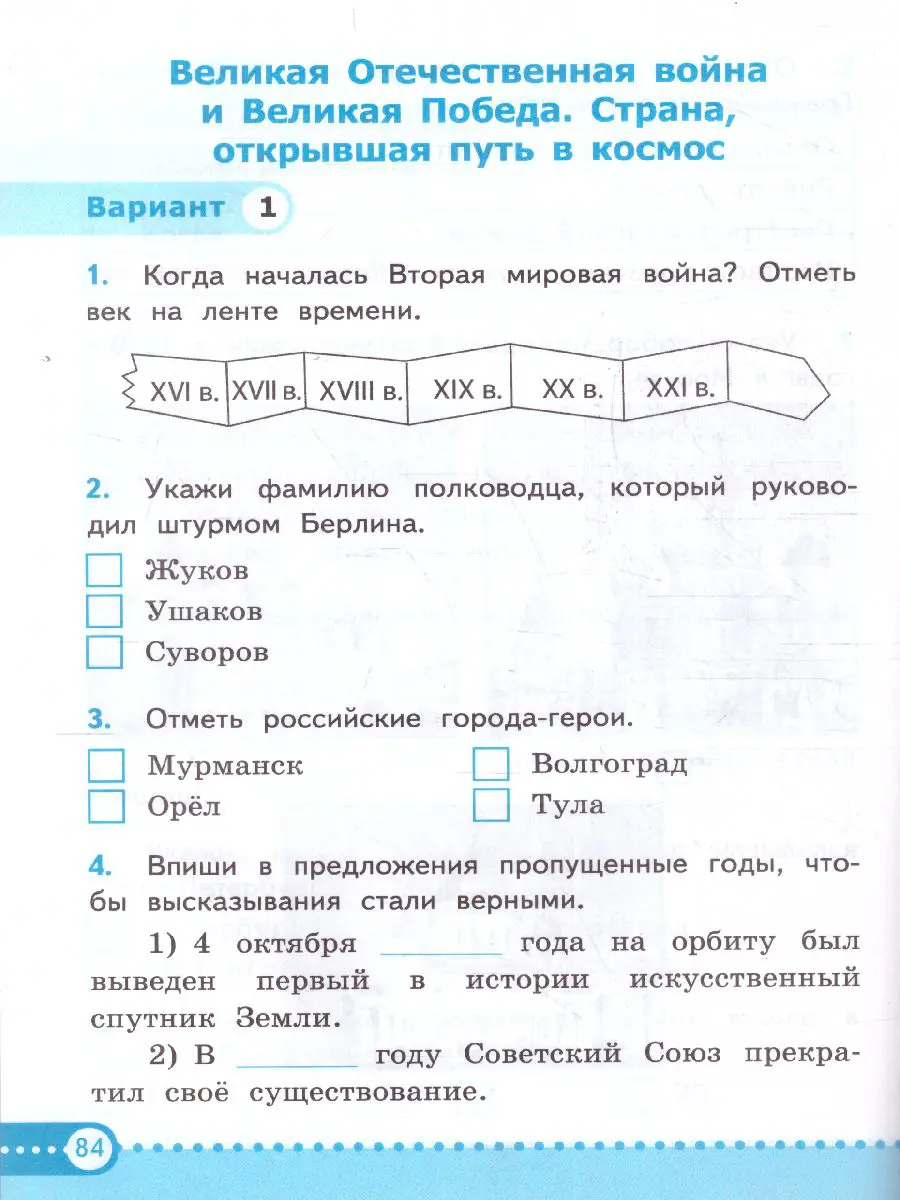 Разнообразные вопросы и задания в работах не позволяют ученикам привыкнуть к стереотипному способу проверки их знаний. Они требуют от учащихся умения формулировать определённые понятия, называть объекты и давать им характеристики, находить соответствия между предметами, узнавать предметы по описаниям, объяснять некоторые события, приводить свои примеры по материалу темы и многое другое.