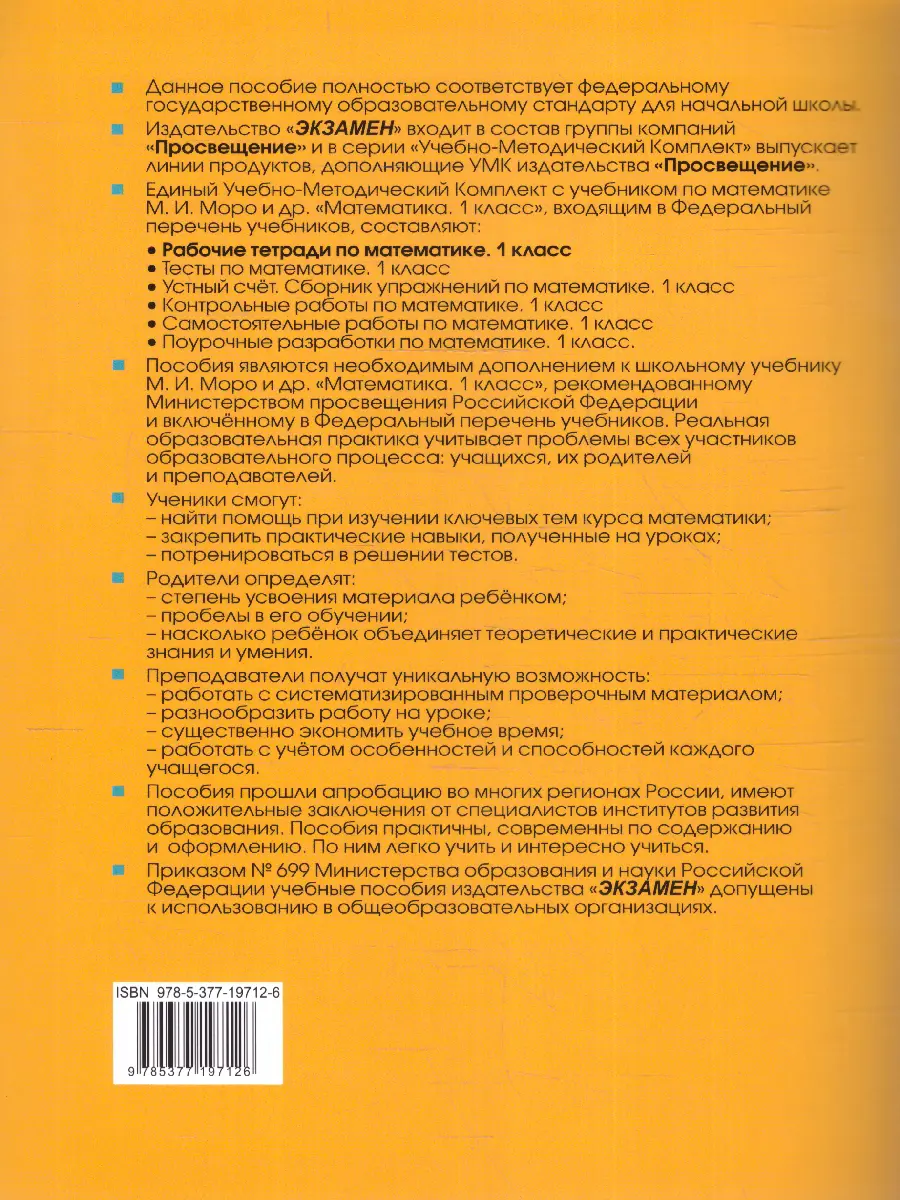 Рабочая тетрадь по математике предназначена для самостоятельной работы учащихся. Задания в тетрадях соответствуют учебнику М. И. Моро и др. "Математика. 1 класс. В 2-х частях".