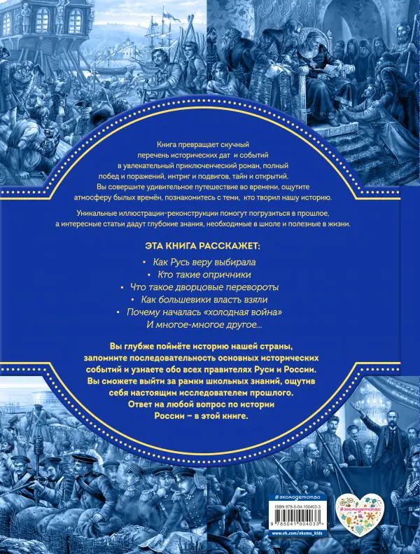 Книга "История России. Панорама нужных знаний" – это уникальная методика изучения истории через цепь ключевых событий, представленных в виде серии иллюстраций-реконструкций, связанных ёмким увлекательным рассказом. По этим опорным точкам читатели не только лёгко освоят весь материал по истории России, поймут логику истории, узнают много удивительных фактов, познакомятся с сотнями исторических персонажей. Книга рекомендуется для подготовки к изучению школьного предмета "История" и будет интересна всем, кто хочет узнать о прошлом нашей страны.