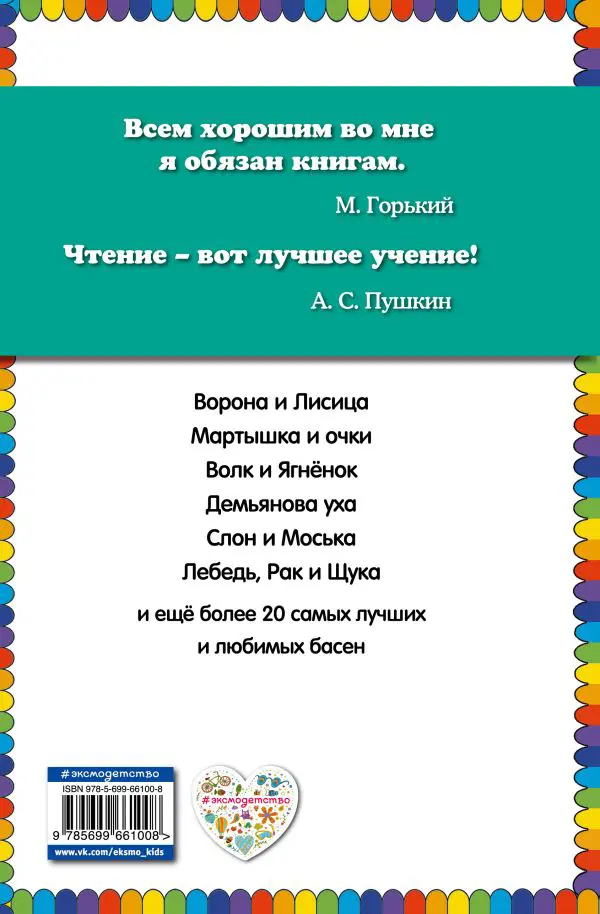 Басни великого Ивана Андреевича Крылова нисколько не утратили актуальности и в наши дни. Яркие остроумные иллюстрации и крупный шрифт сделают знакомство ребенка с баснями особенно приятным. ПОПУЛЯРНАЯ СЕРИЯ!