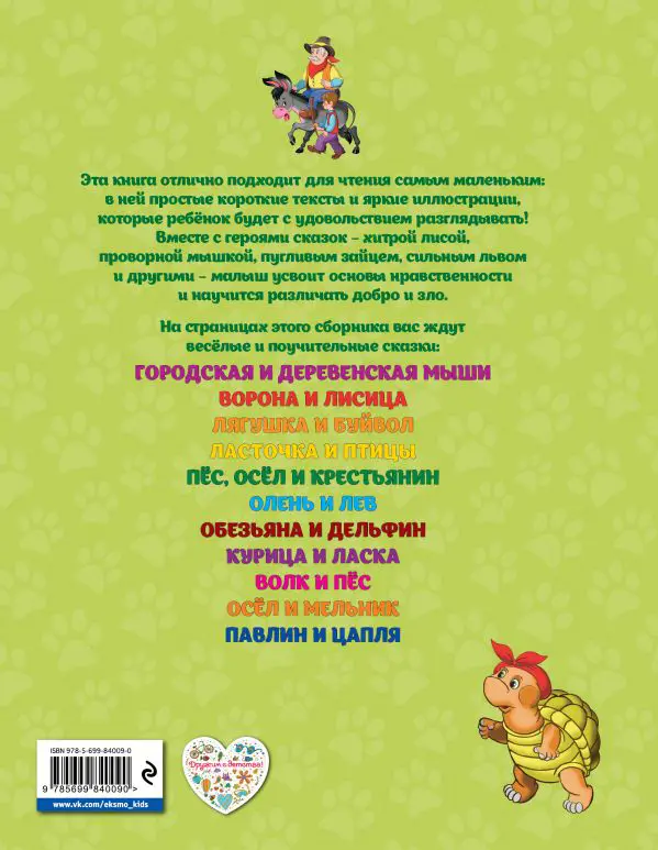 Каждая сказка – это поучительная история, главный герои которой – кто-то из зверят: мышка, лиса, олень, волк, пёс, ослик, лев. Эти истории не только увлекут маленького читателя, но и помогут ему узнать о том, что – хорошо, а что – плохо.