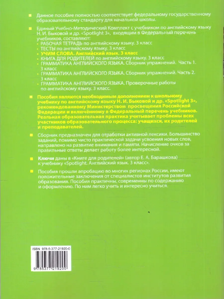Английский язык. 3 класс. Spotlight. Учим слова. ФГОС новый. (к новому учебнику)