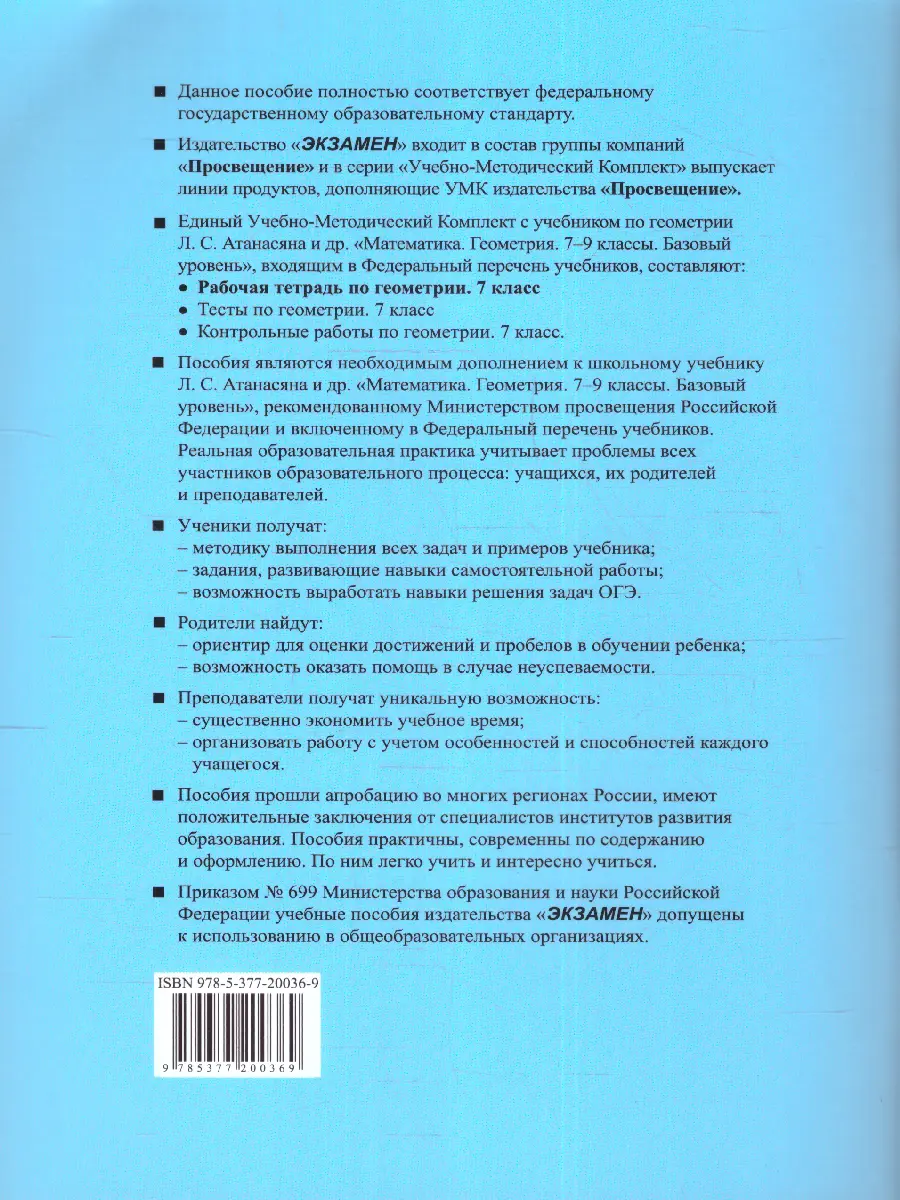 Пособие является необходимым дополнением к школьному учебнику Л. С. Атанасяна и др. "Математика. Геометрия. 7-9 классы. Базовый уровень", рекомендованному Министерством просвещения Российской Федерации и включенному в Федеральный перечень учебников.