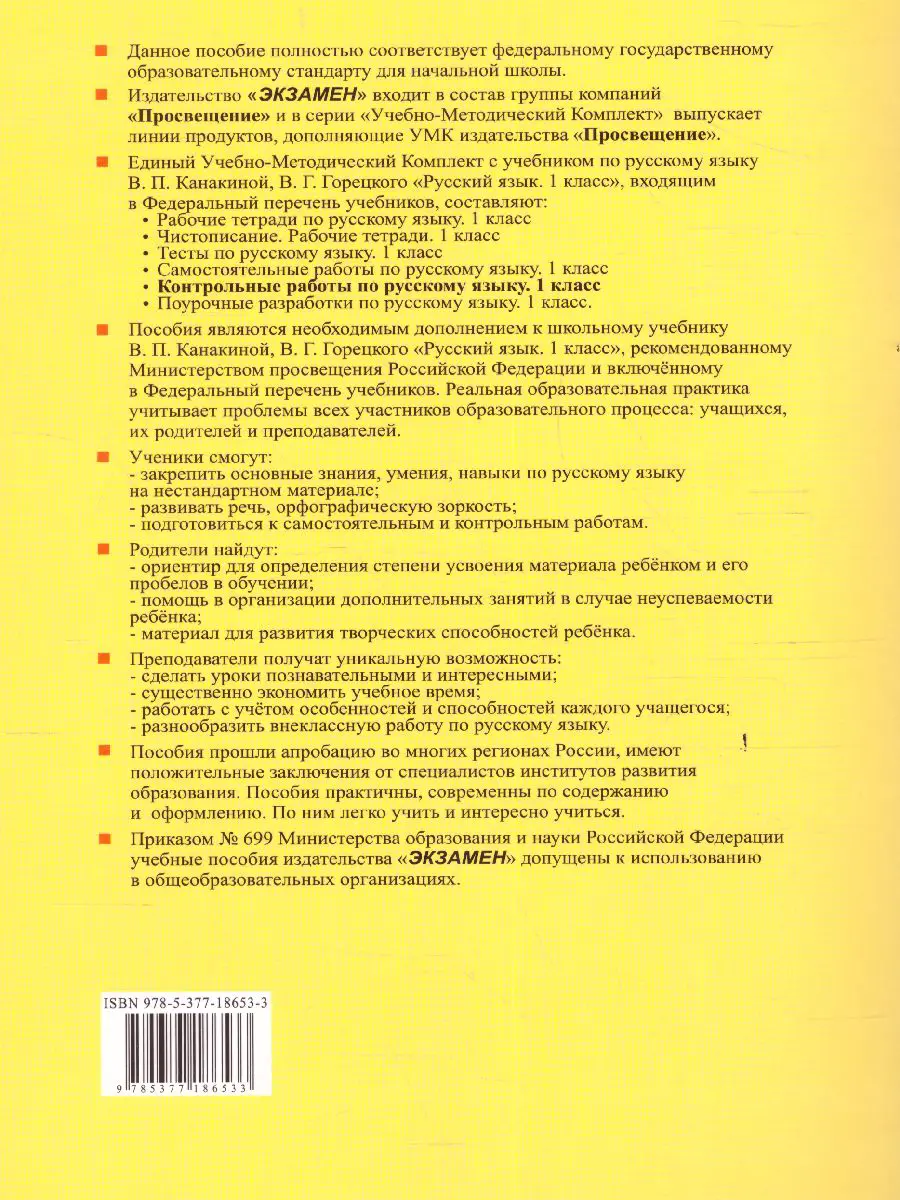 Русский язык 1 класс. Контрольные работы к учебнику В.П. Канакиной. Часть 1. УМК. ФГОС. Данное пособие полностью соответствует федеральному государственному образовательному стандарту (второго поколения) для начальной школы.