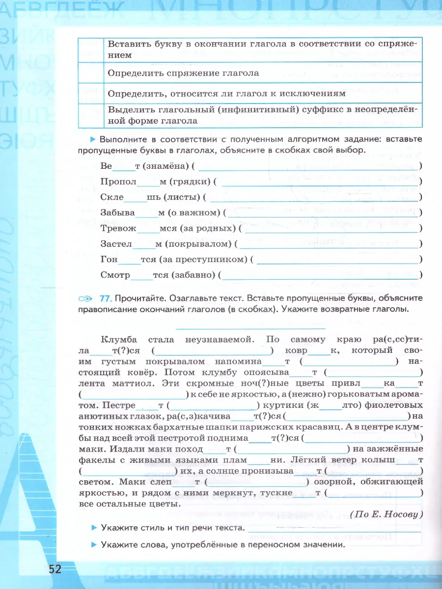 В рабочей тетради содержатся дополнительные задания к каждому разделу учебника, выполняя которые ученик сможет глубже осмыслить теоретический материал, разобраться с помещенными в учебнике правилами, научиться применять эти правила на практике, узнать об особенностях разных видов текстов и потренироваться в их создании, поупражняться в фонетическом, морфемном и грамматическом анализах.
