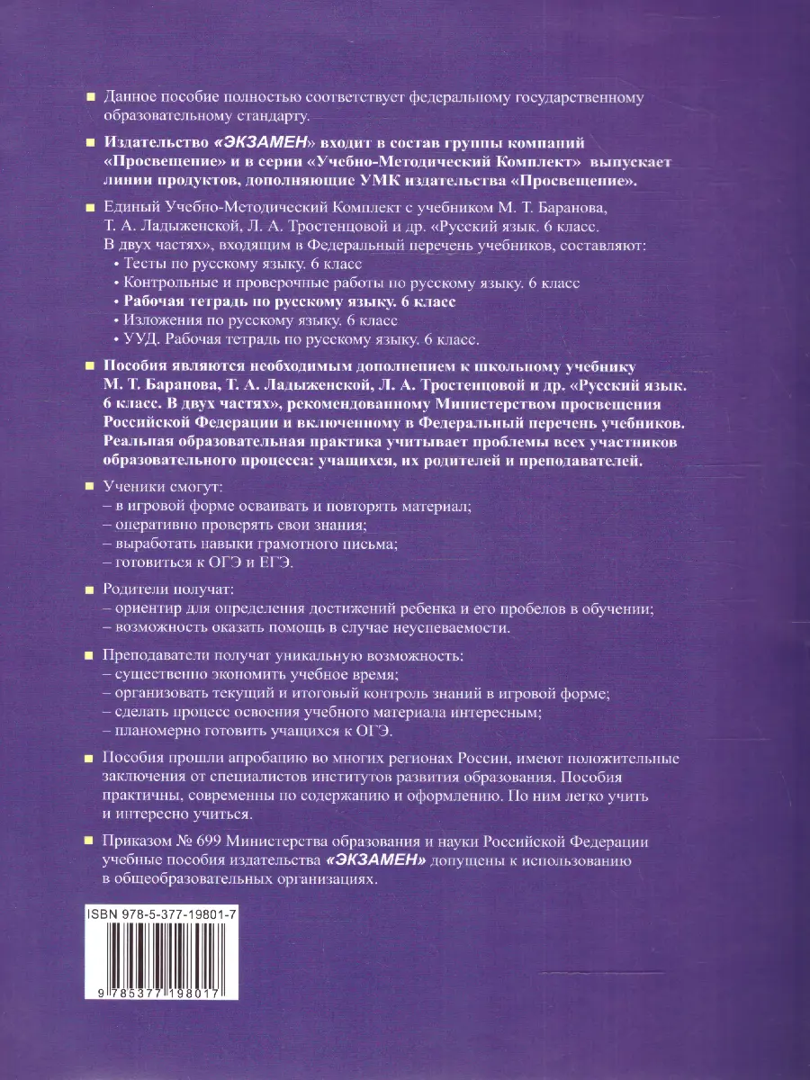Русский язык. 6 класс. Рабочая тетрадь. Часть 2. УМК Баранова. ФГОС новый. (к новому учебнику)