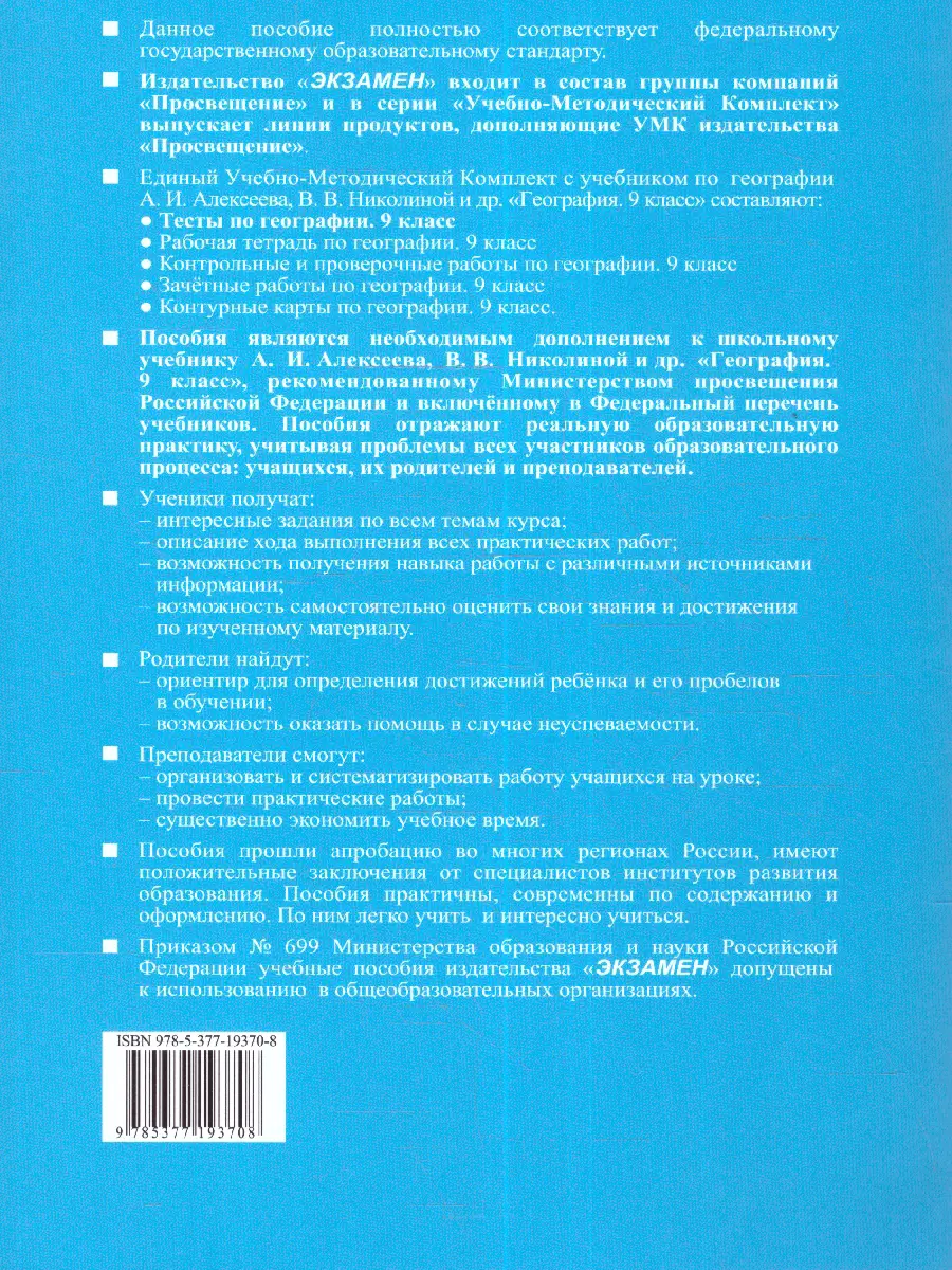 География 9 класс. Тесты к учебнику А.И. Алексеева, В.В. Николиной и др. С новыми картами. ФГОС новый.