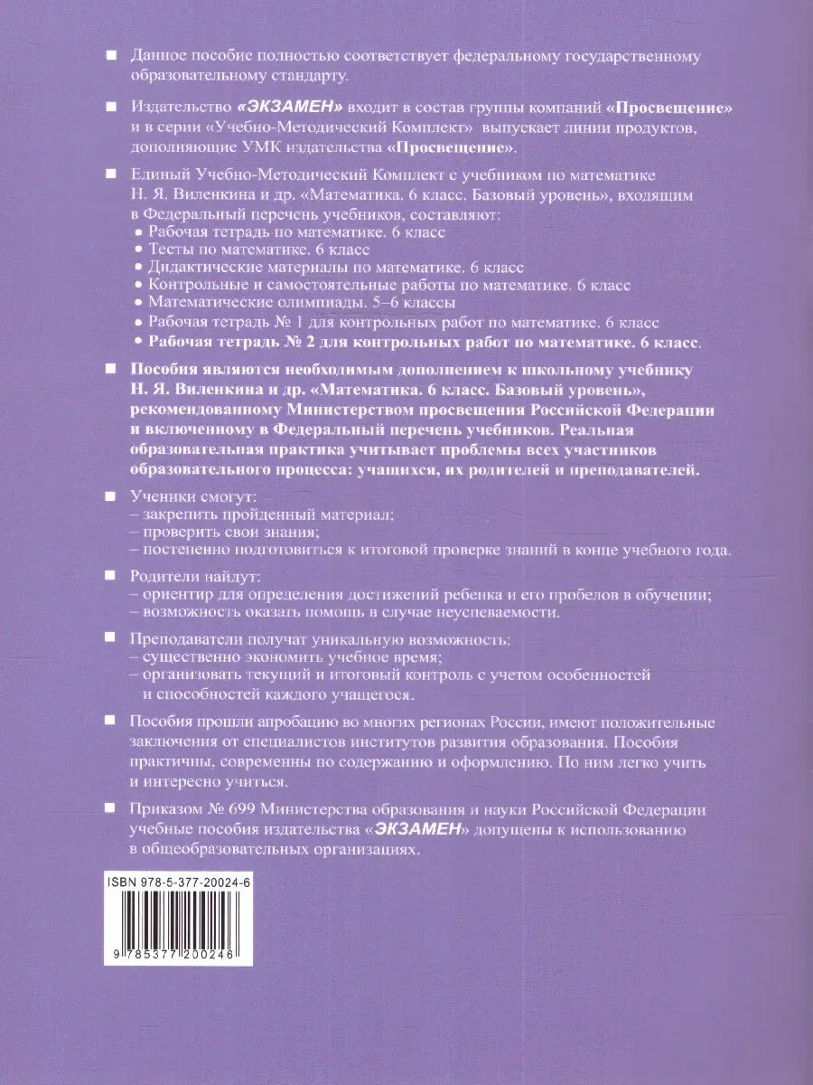 Математика 6 класс. Базовый уровень. Рабочая тетрадь № 2 к учебнику Виленкина Н.Я. УМК"Математика. Виленкин Н.Я. (5-6)".Новый ФГОС (к новому учебнику). Данное пособие полностью соответствует федеральному государственному образовательному стандарту.
