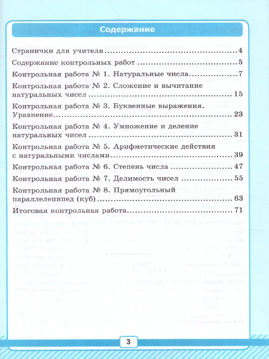 В сборнике представлены тематические контрольные работы, предназначенные для первого полугодия учебного года. В конце первого полугодия проводится итоговая контрольная работа.