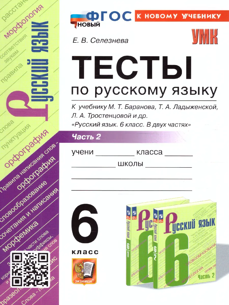 Русский язык. 6 класс. Тесты. Часть 2. УМК Баранова. ФГОС новый.(к новому учебнику)