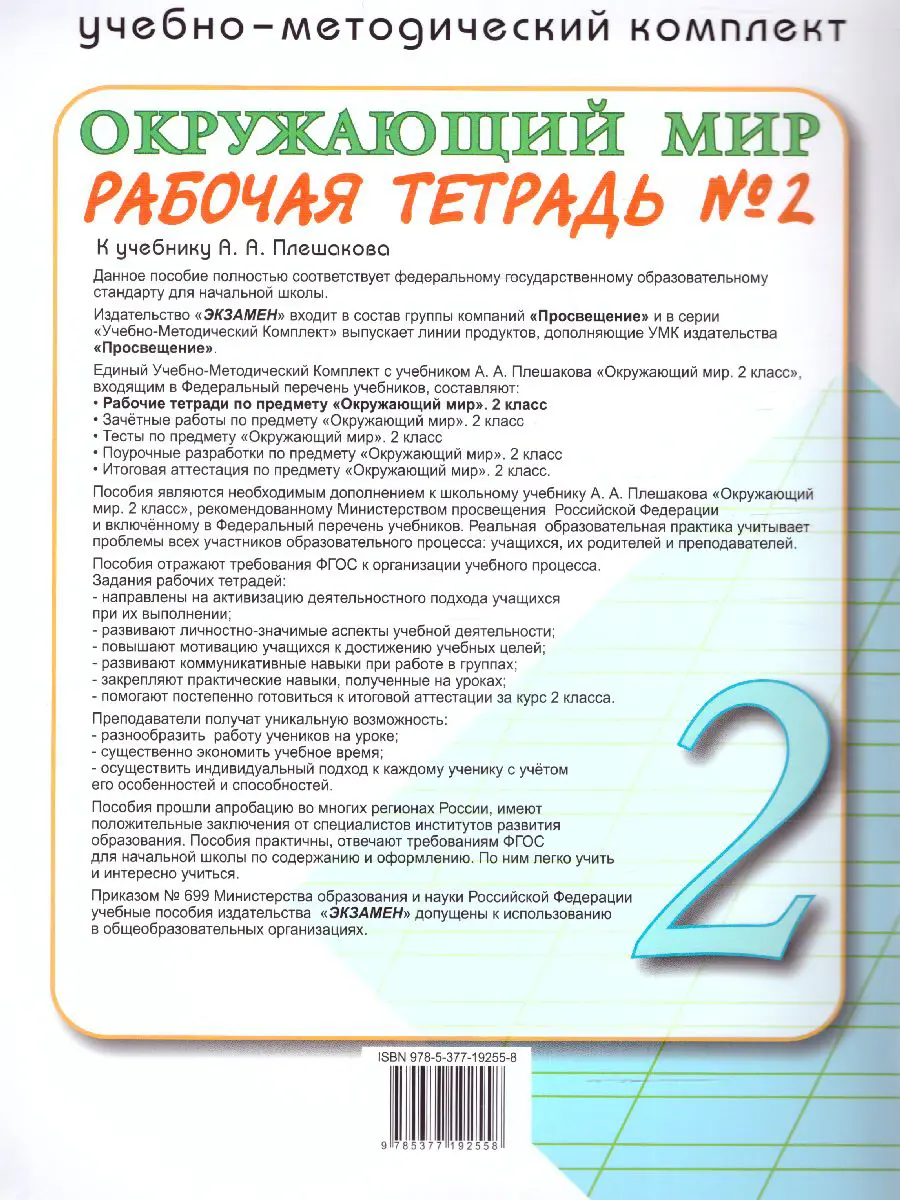 Окружающий мир 2 класс. Рабочая тетрадь № 2. К учебнику А.А. Плешакова. ФГОС НОВЫЙ (к новому учебнику). Данное пособие полностью соответствует федеральному государственному образовательному стандарту (второго поколения) для начальной школы.