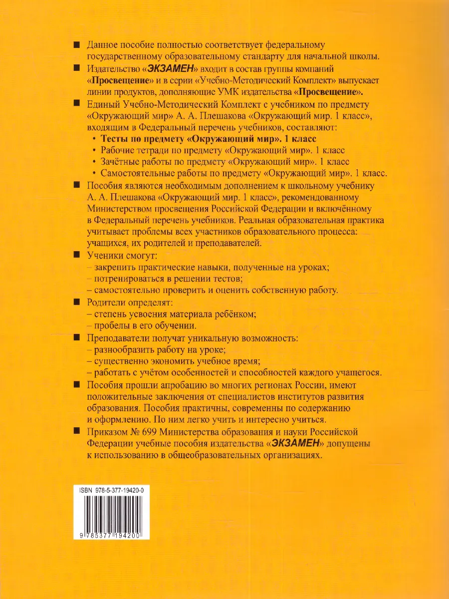 Окружающий мир 1 класс. Тесты к учебнику А. А. Плешакова. Часть 2. ФГОС Новый. Входит в УМК: Школа России. Окружающий мир. 1 класс. Плешаков А.А. Данное пособие полностью соответствует федеральному государственному образовательному стандарту для начальной школы.