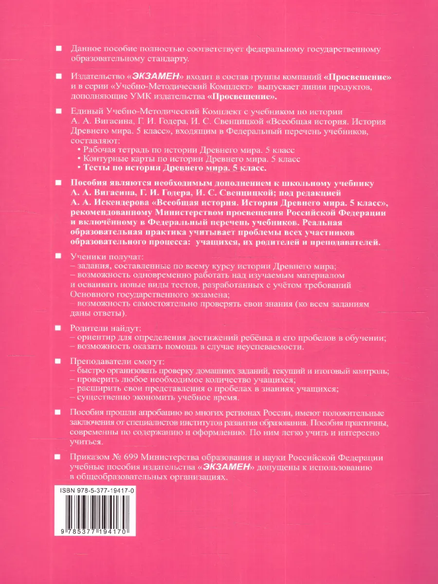 История древнего мира 5 класс. Тесты. УМК Вигасин А.А. К новому ФПУ. ФГОС. Данное пособие полностью соответствует федеральному государственному образовательному стандарту (второго поколения).