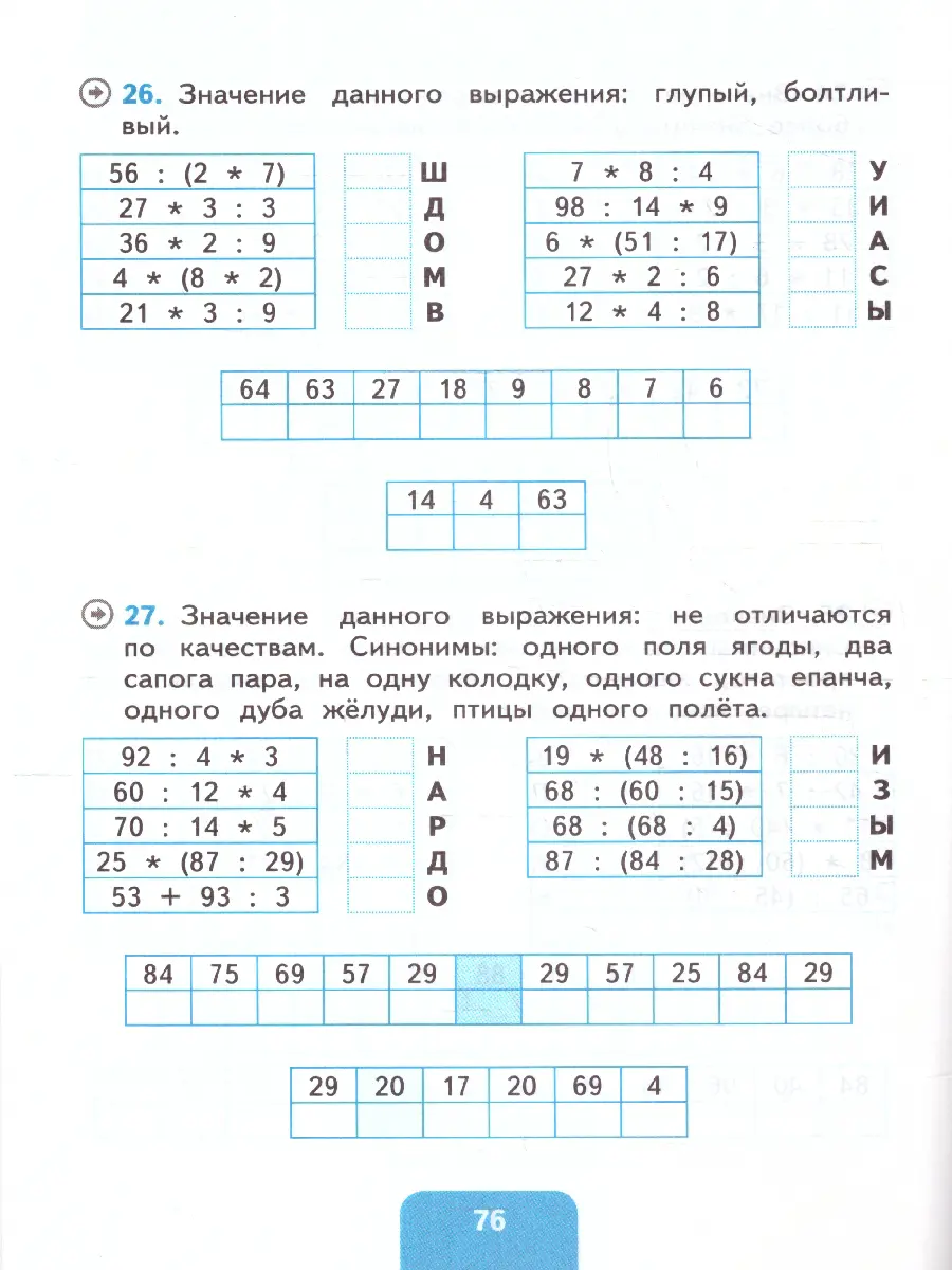 Решив примеры, учащиеся смогут прочитать зашифрованные афоризмы. Работа с афоризмами направлена на обогащение, развитие образности и выразительности речи.