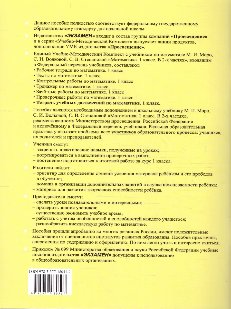 Математика. 1 класс. Тетрадь учебных достижений. Школа России. ФГОС новый. (к новому учебнику)