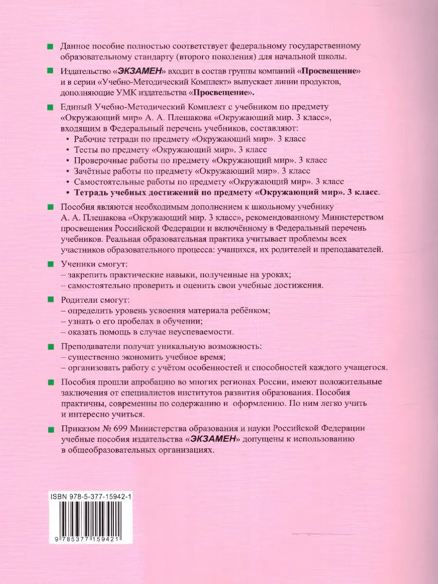 Окружающий мир. 3 класс. Тетрадь учебных достижений. Школа России. (к новому ФПУ)