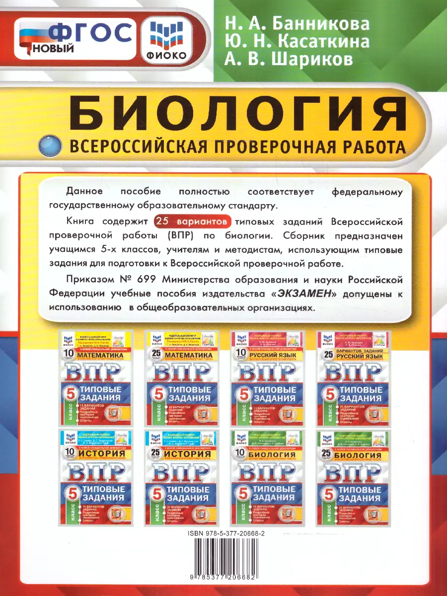 Всероссийские проверочные работы (ВПР). Биология. 5 класс. 25 типовых заданий. ФИОКО. Статград. ФГОС Новый
