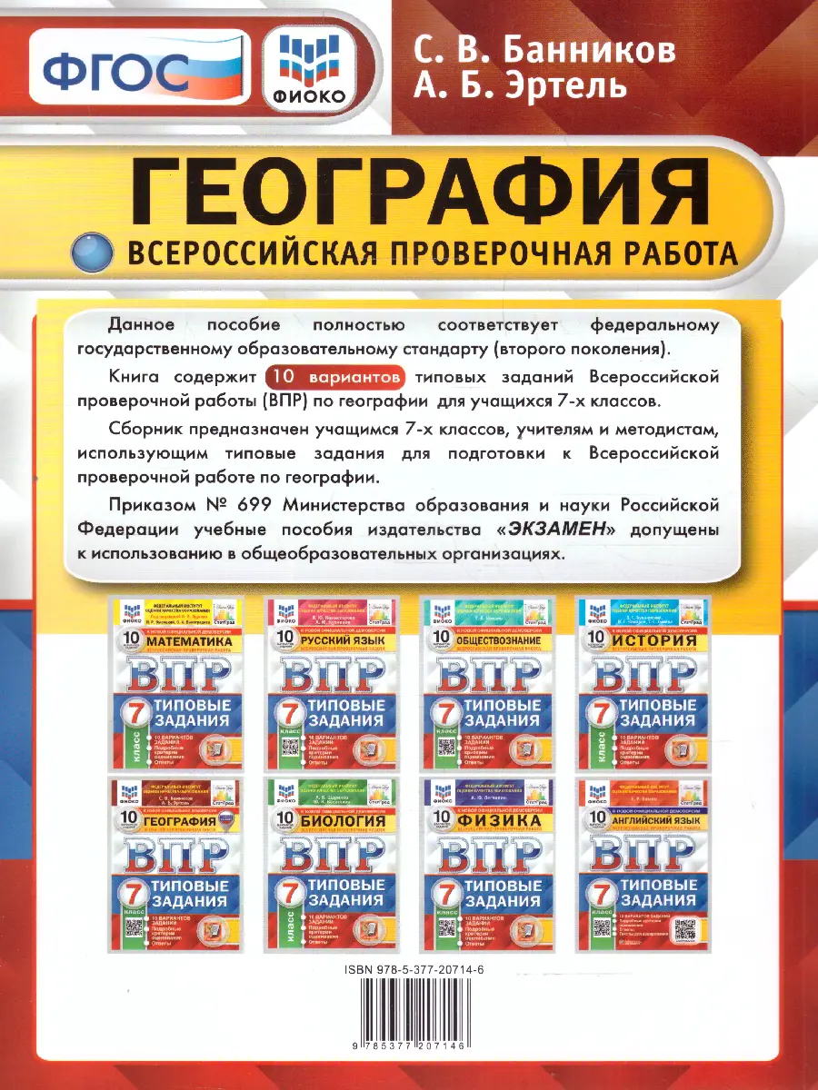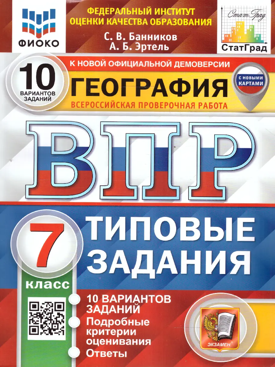 Всероссийские проверочные работы (ВПР). География. 7 класс. 10 типовых заданий. ФИОКО. Статград. (с новыми картами.)