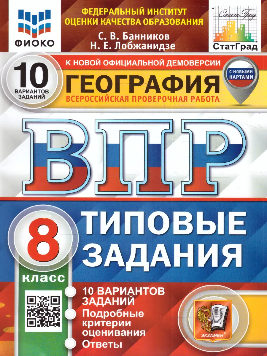 Всероссийские проверочные работы (ВПР). География. 8 класс. 10 типовых заданий. ФИОКО. Статград. (с новыми картами)